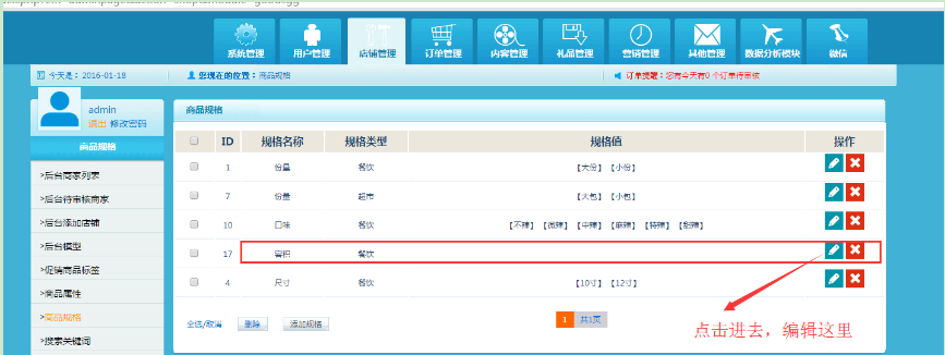 这个排序随便填写啦,所属属性的话根据你先添加的是餐饮还是超市,来自己选择就行,我选择的是餐饮,一会我就到餐饮里面找一个店把这个容积的规格添加上去。咱们下面还得先完善一下,你添加完容积之后要想下图一样去编辑一下