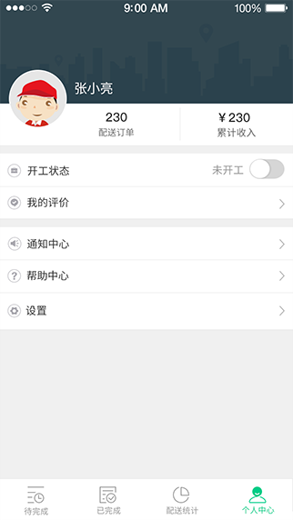 配送员可自由控是否开工,一键快速切换状态,灵活便捷。